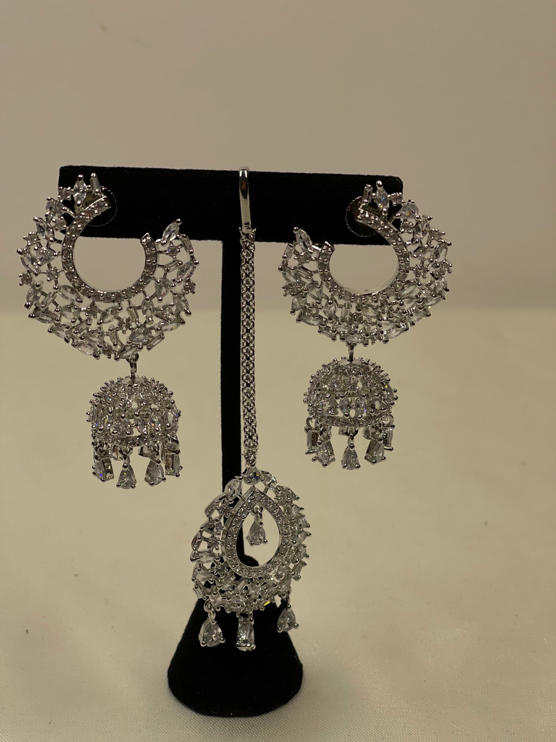 Silver & White Jhumki Tikka Set